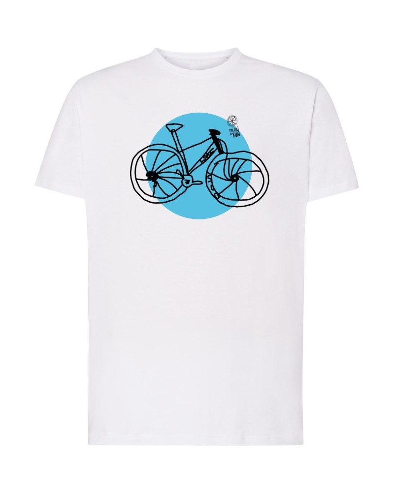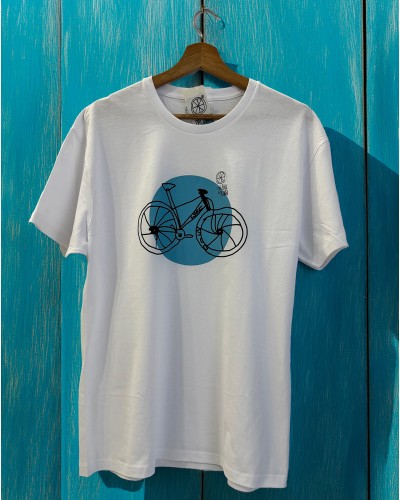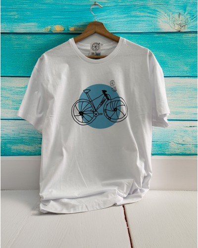 La camiseta FLOW de Mibiciesxula es tan buena que no dejamos de sacar nuevas versiones, en 2026 nos atrae de vuelta la versión original, blanca con logo en cian, algodón premium .