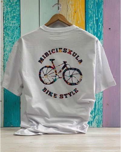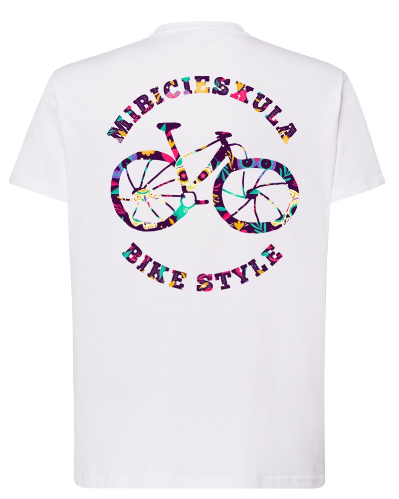 Una camiseta que grita cultura ciclista con sabor latino. Frida es color, expresión y descaro. Sobre una base blanca, el estampado trasero lleno de calaveras, flores y trazos étnicos convierte la bici en un lienzo que homenajea a nuestras raíces más atrevidas.