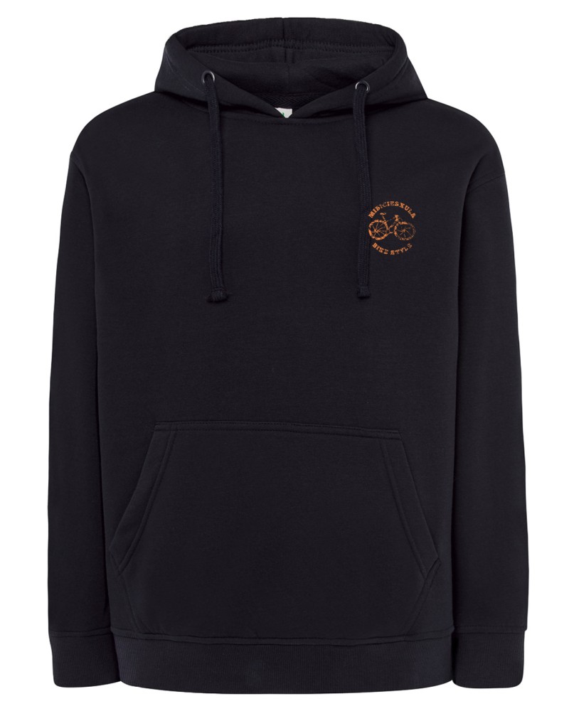 La nueva sudadera azul marino con estampado naranja denim es nuestra interpretación ochentena.